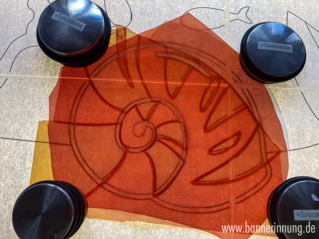 Zum Schluss entstehen die Stabtunnel. Hier wurde das Motiv jeweils horizontal erweitert, damit man die Stabtaschen später von der Vorderseite gar nicht wahrnimmt. Hier muss alles passen!