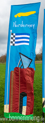 Als letztes folgt die Flagge von Norderney, die erst aus Einzelflächen zusammengesetzt wurde, bevor sie auf das Banner genäht wird.