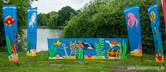 Passend zu unseren MehrMeer-Bannern wollten wir einen Wind- und Sonnenschutz haben. Der Vorteil: auf das Querformat passen die ganzen Motive noch viel besser nebeneinander.